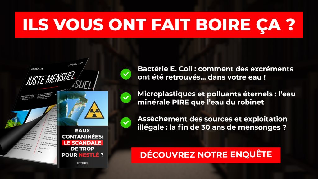 Avec Juste Mensuel, notre revue d’actualité 100 % indépendante, nous avons consacré un dossier complet à cette affaire : « Eaux contaminées : le scandale de trop pour Nestlé ? ».