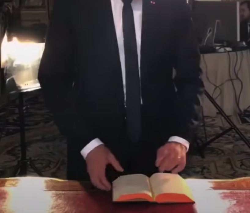 • La forme visible entre le bras droit et le torse d’Emmanuel Macron n’est pas anodine.